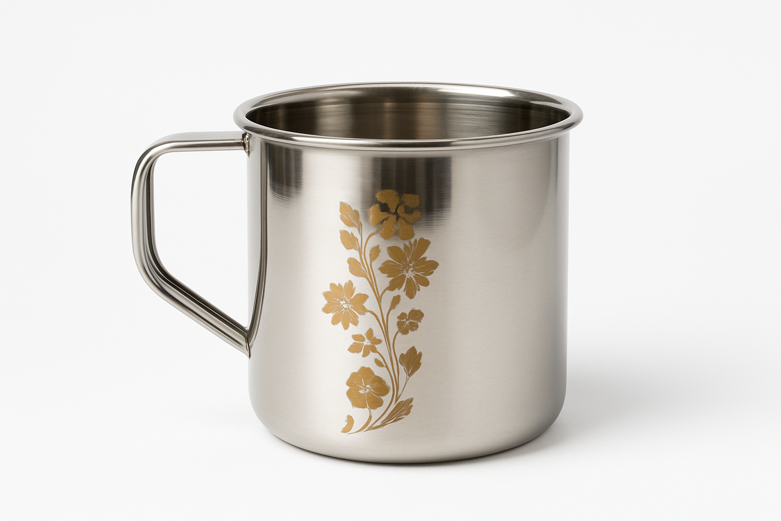 Upgrade your everyday drinkware with this Premium Stainless Steel Mug with Handle, beautifully enhanced with a golden floral engraving. Crafted from high-quality, food-grade stainless steel, this mug is a practical and elegant choice for your home, office, or travel needs.